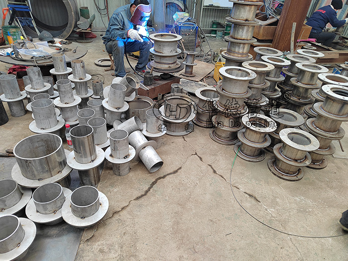 不銹鋼防水套管可分成:不銹鋼剛性防水套管和不銹鋼柔性防水套管二種。管道穿越樓板平屋面預埋件剛性防水套管,能合理防止混凝土樓板滲漏,在建筑給水排水工程項目中廣泛選用;飲用水、工業廠房、人防設備、污水處理站的污水井、廢水池必須管路根據紅磚墻穿過,而且必須能左右主體活動的,那麼就必須柔性防水套管,這二種防水套管在用以與浸蝕物質觸碰時,那設計方案工作人員應當依據物質特性及防腐蝕規定,挑選可用的抗腐蝕原材料---316L不銹鋼原材料、304不銹鋼原材料、201不銹鋼原材料這些。