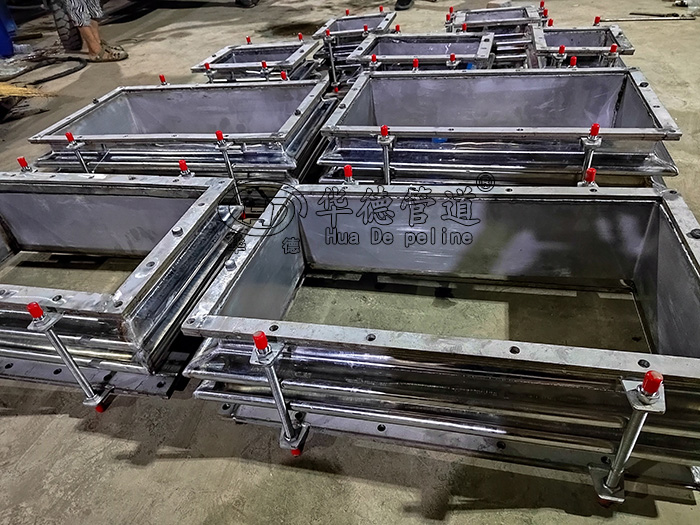矩形金屬波紋膨脹節結構簡單,吸收軸向位移和橫向位移。由一個或多個矩形波紋管及端部矩形接管、拉桿、導流筒等組成的矩形撓性元件。用于壓力較低且介質為熱空氣的電力、冶金、石化、水泥等行業的煙道、風道、煙氣脫硫、除塵、循環流化鍋爐等管道系統使用。