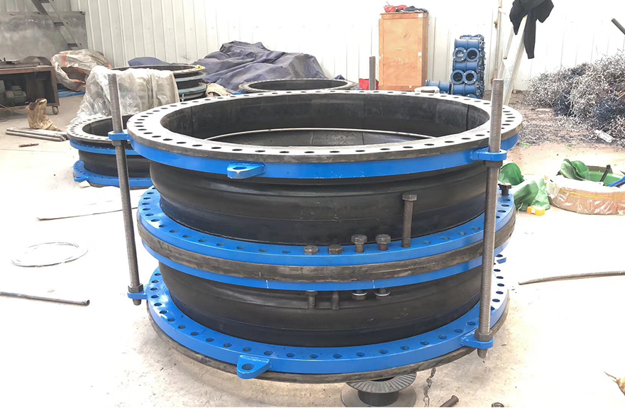 9、安裝橡膠接頭時,螺栓的螺桿應伸向接頭外側,每一法蘭端面的螺栓按對角加壓的方法反復均勻擰緊,防止壓偏。